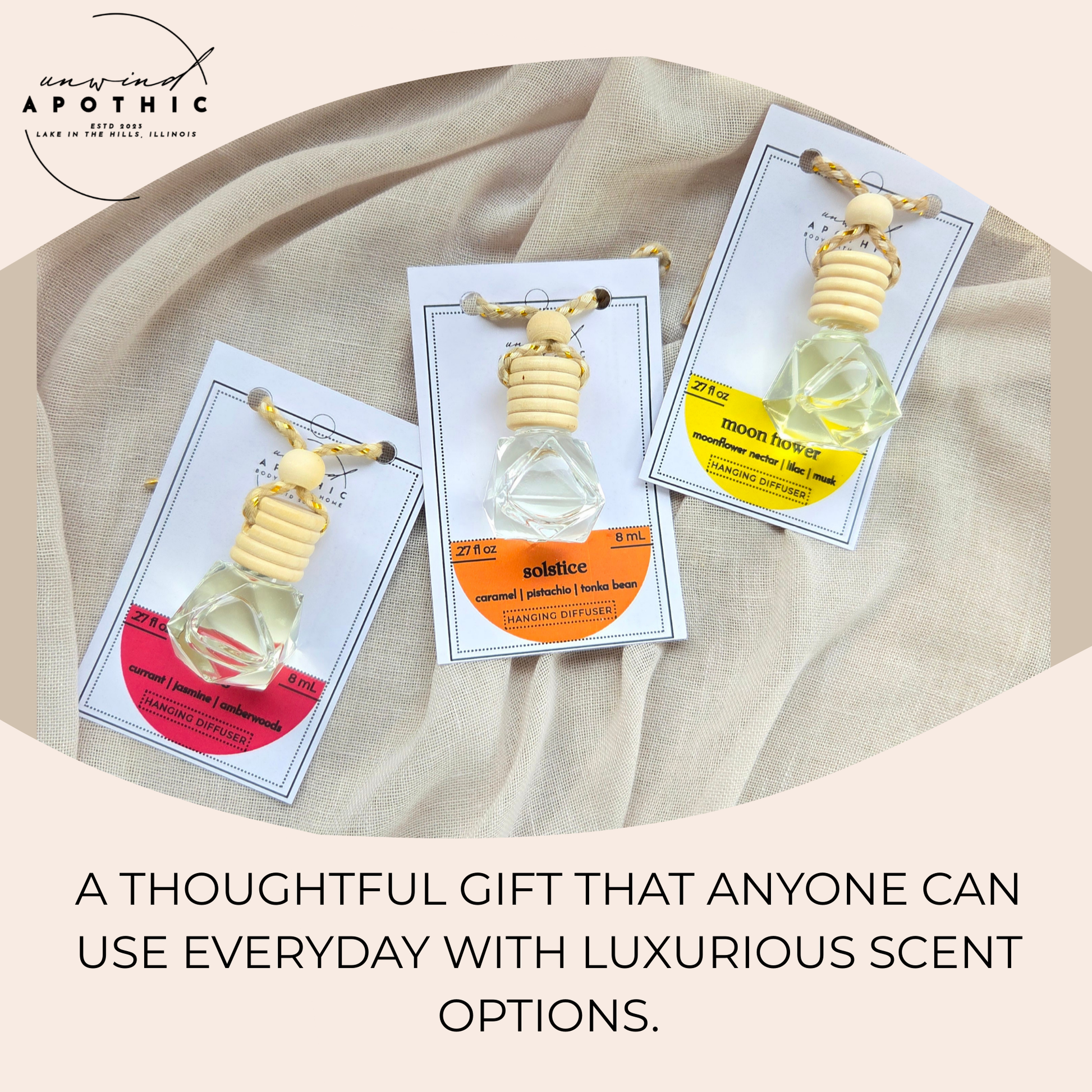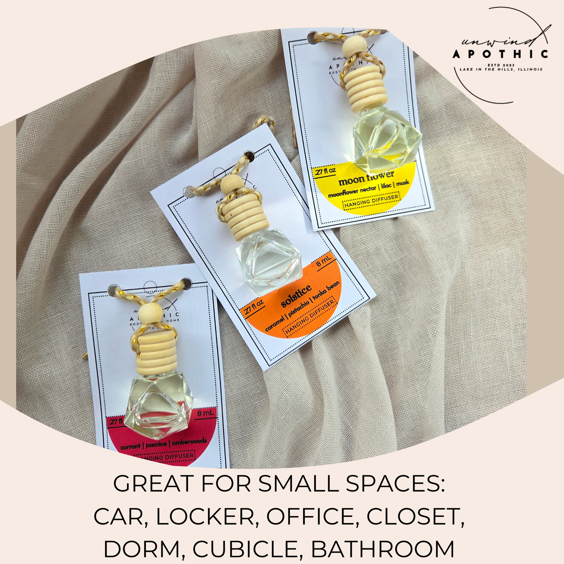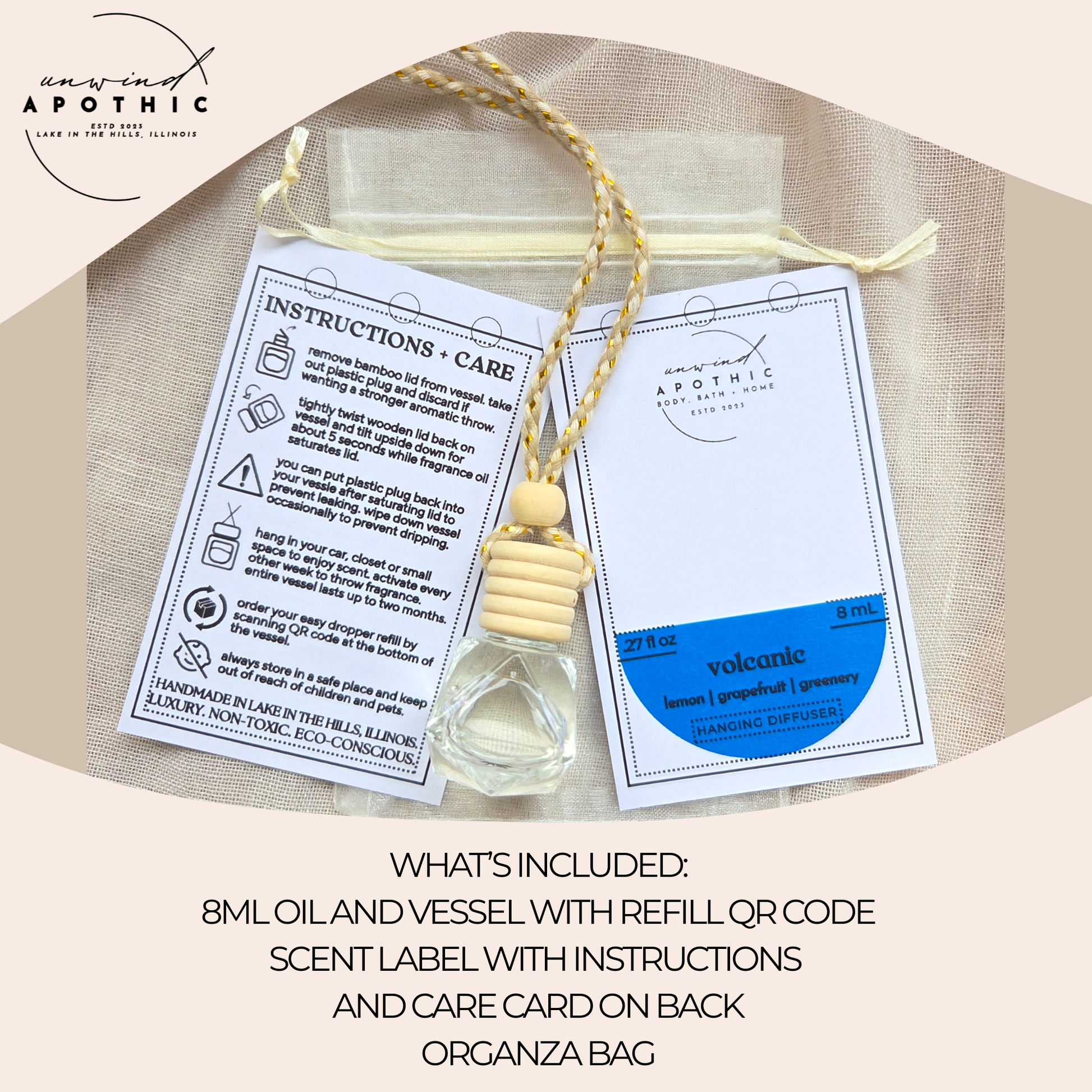 The viral air freshener—reimagined with clean ingredients and smarter design. 🌿 Our diamond-shaped hanging air diffusers are made with non-toxic fragrance oils and no hormone disruptors, so you can enjoy amazing scent in any small space without the worry. Bottles are .27 fl. oz. | 8mL.